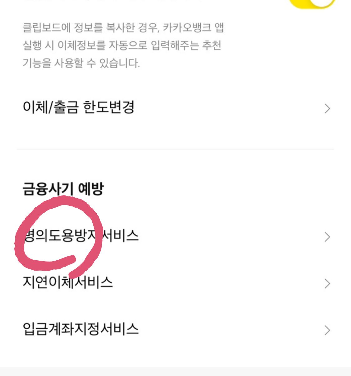 3)스크롤을 쭉 내려 하단의 명의도용방지서비스를 선택합니다.